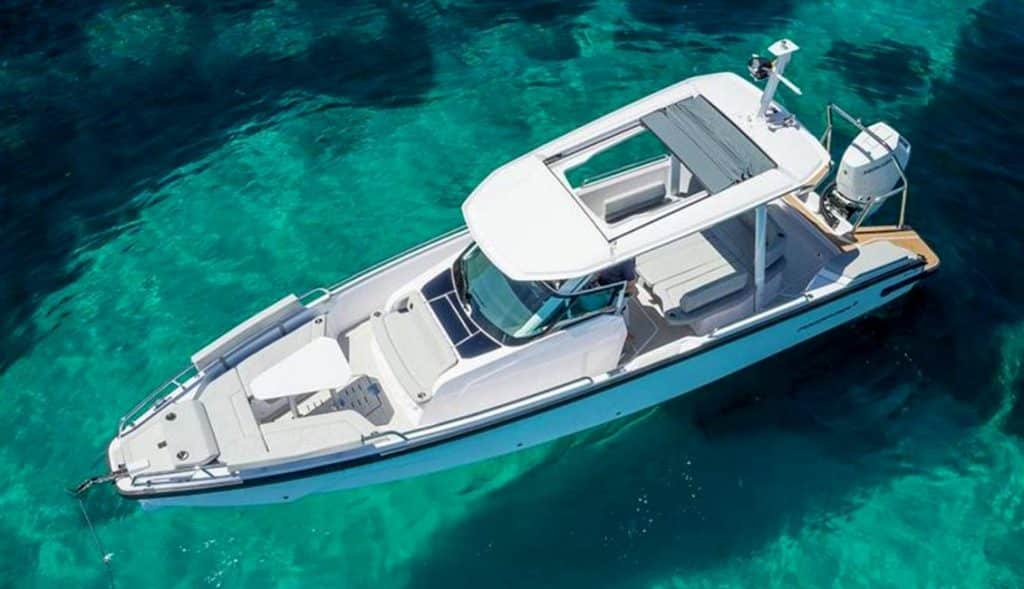 La Axopar 29 ST está equipada con prestaciones premium pensadas para el charter de día: baño completamente equipado en proa, sistema de sonido de alta calidad, nevera eléctrica, cargadores para dispositivos móviles y amplias zonas de sombra que se extienden tanto en proa como en popa. Todo ha sido concebido para que los pasajeros disfruten de una experiencia exclusiva, cómoda y sin preocupaciones.